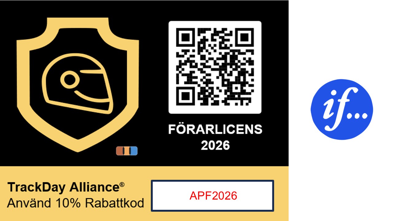 Erbjudande: Tecknar du en helårslicens för 2026 och använder rabattkod APF2026 får du 10 % rabatt. Med licensförsäkringen får du ett personskydd som gäller vid trackday event, träning och tävling – inklusive våra ActionPics event – samt hos andra arrangörer som följer lagstiftningen.
